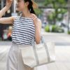 がばっと大きく開くので、荷物を詰め込みやすくなっています。取り外せる底板入りで、より荷物の収まりもよく底が抜けにくいのもポイント。撥水軽量キャンバス地のバッグは収納力抜群で、通勤通学用や、マザーズバッグにも最適。オンオフ問わずデイリーに重宝すること間違いなしです。