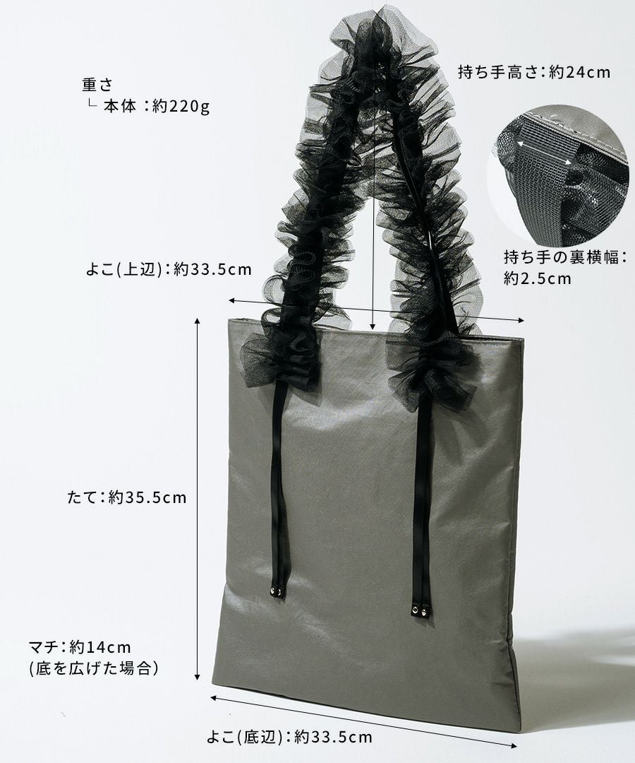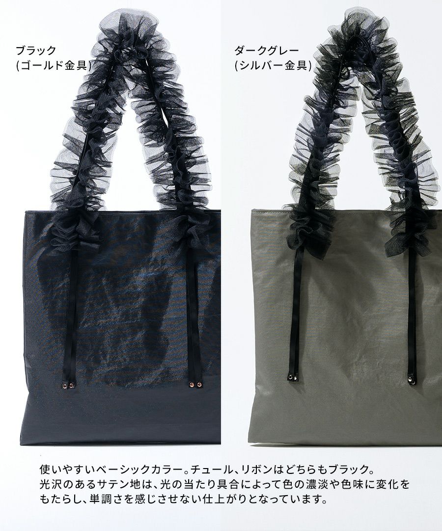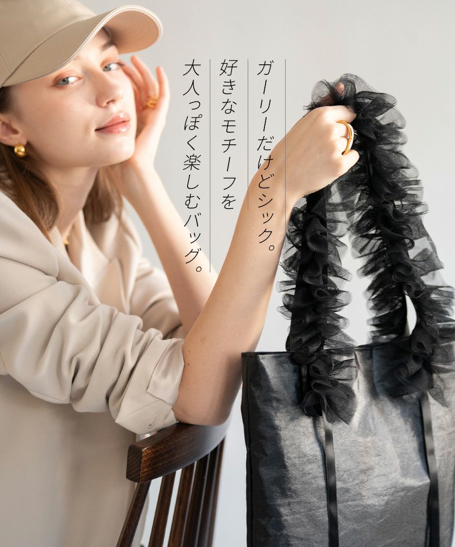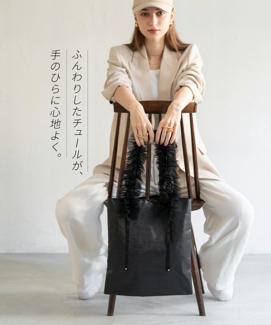 他の画像を見る チュール トートバッグ フリルハンドル 【会員限定20%OFFクーポン 2/27(9:59)まで】Tulina チュリナ【在庫限り】 ¥ 6,200 税込 カートに入れる お気に入りに登録する