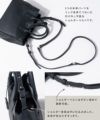ギボシ留めのショルダーベルトでななめ掛けや肩掛けに。外して手持ちに。ショルダーの金具が目立ちにくいので、外したときも自然。コーデやシーンにあわせてつかえます。