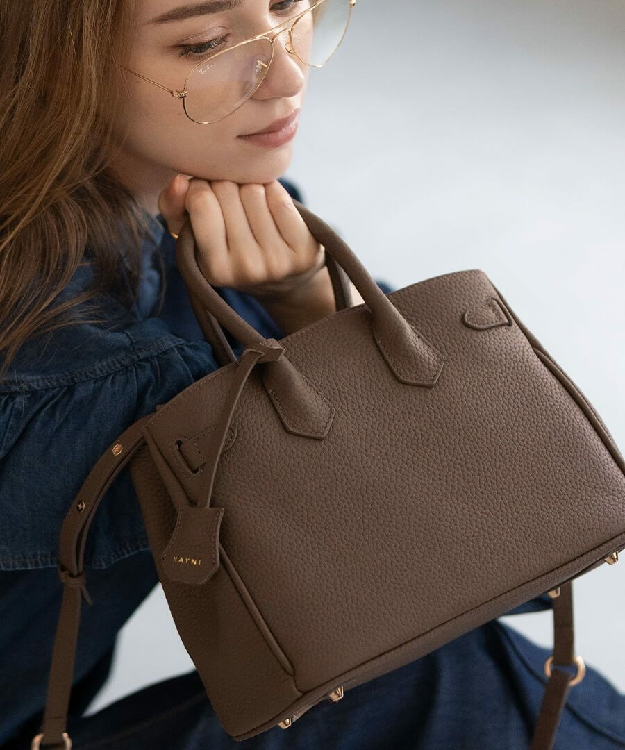 クラシカルなフォルムと凛とした顔立ちが、大人っぽい雰囲気を演出します。飽きのこない正統派デザインの本革バッグだから、何年経っても色あせることなく、日常から特別な日まで、どんなコーデにも寄り添ってくれます。