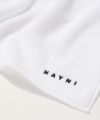 世代問わず、シーン問わず使えるように、シンプルな白にしました。黒の刺繍のHAYNIロゴがワンポイント。男性にも使いやすい。