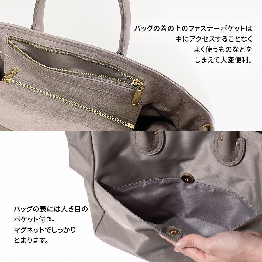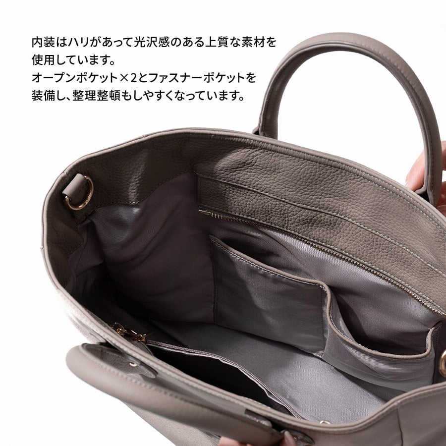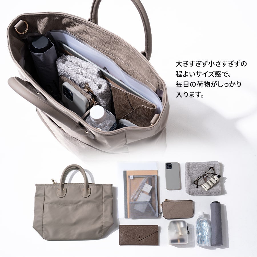 3つの収納空間を持っているので、美しく整理整頓が叶います。荷物の量にあわせて、サイドベルトで調節も可能。 使い勝手の良いサイズ感で、様々なオケージョンで大活躍。