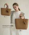 ちょうどB5サイズ横や、500mlペットボトルが横向きに入るサイズ。マチが広いので見た目以上にたくさん入ります。長財布にスマホ、その他小物がしっかり入るので、春夏の普段使いにぴったりなバッグです。