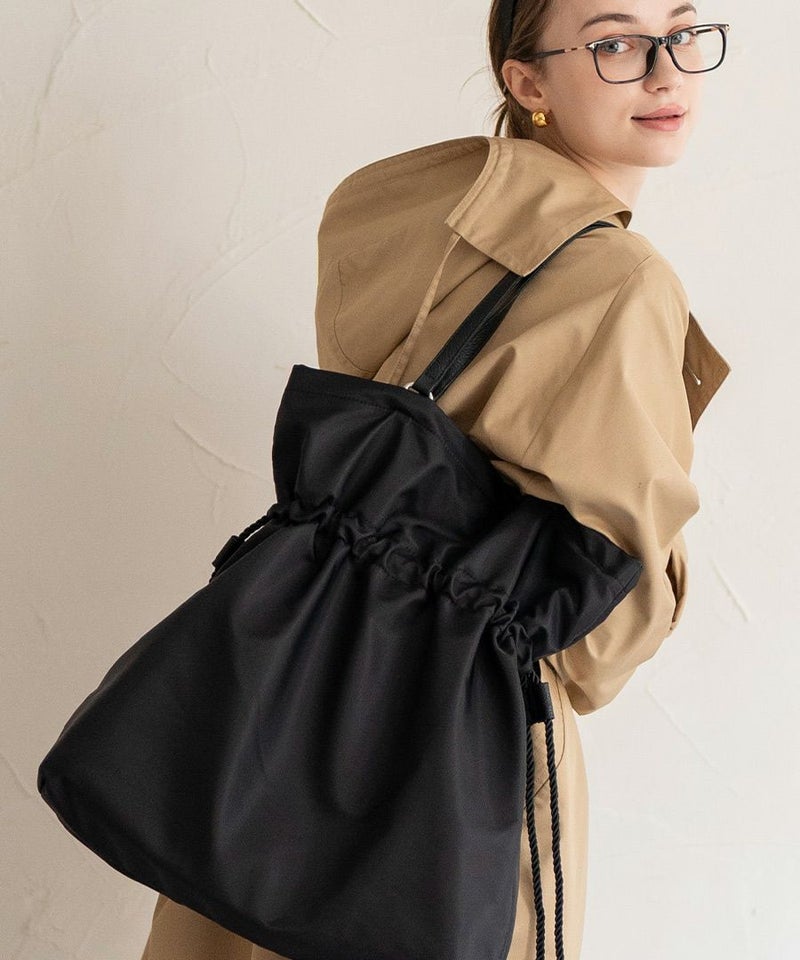 日常も、非日常もいつでもおしゃれに持ちたい!そんな願いをかなえるデザインです。ハンドルは従来のゴサレと同じく大人っぽい細めの本革ハンドル、本体は高密度ナイロンと、素材にもこだわっています。サイドのロープ紐を軽く絞れば巾着風にもなり、フォルム変化も楽しめます。