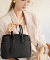 ショルダーバッグとハンドバッグの2wayで装いに合わせて表情を変えられます。取り外し可能なショルダーベルトはギボシ留めを採用。金具が目立ちにくいので、外したときも自然。コーデやシーンにあわせてつかえます。