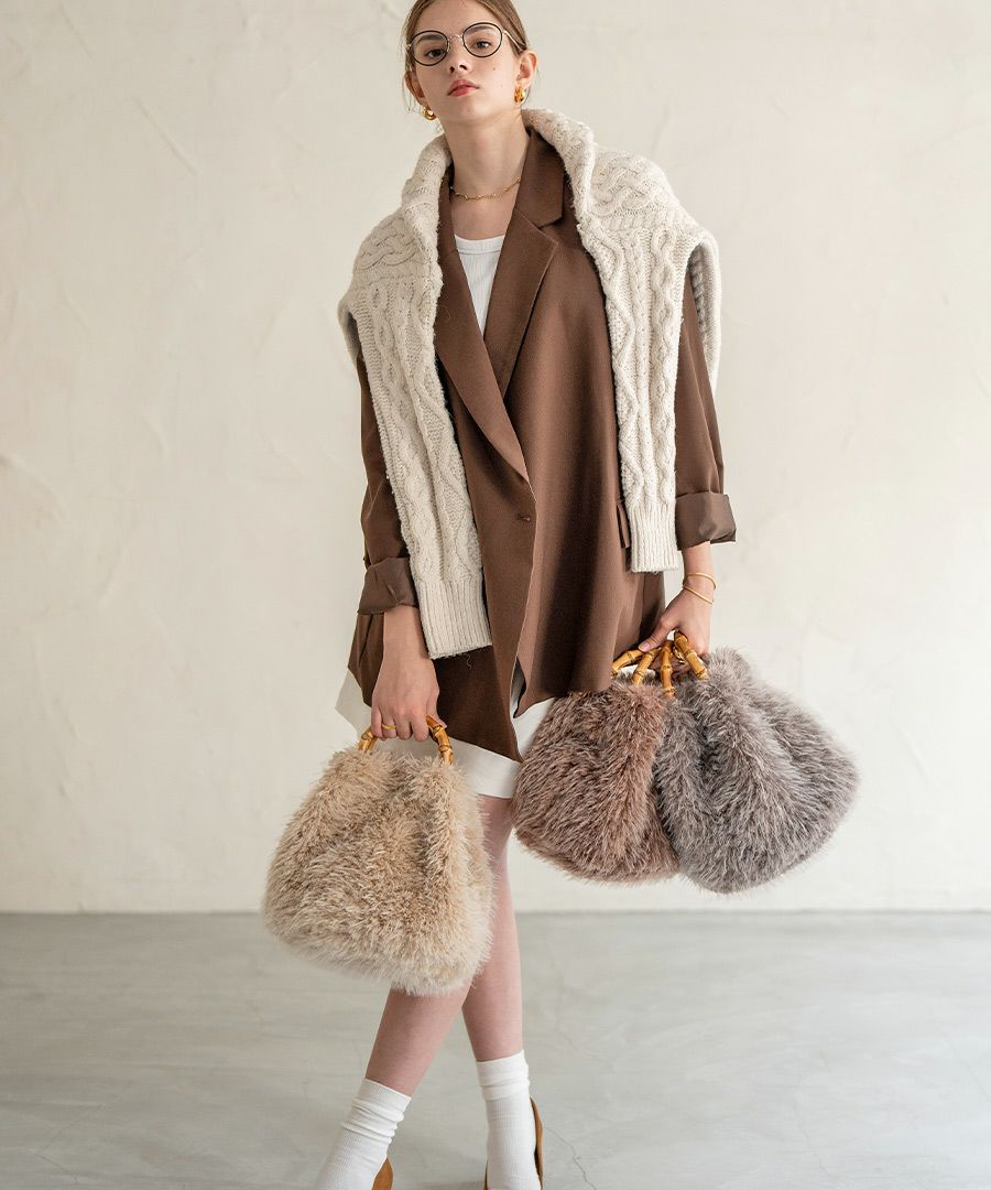 他の画像を見る 2way ツイストハンドル エコファー ショルダーバッグ 【11/30(23:59)まで会員限定1,000円オフクーポン】Dollfur ドルファ【在庫限り】 ¥ 8,900 税込 在庫切れ お気に入りに登録する